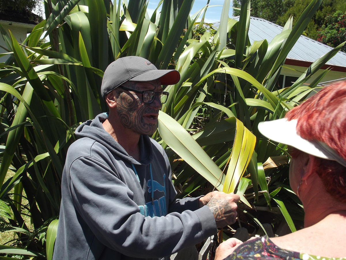 Maori showing plant to Sue -- December 22