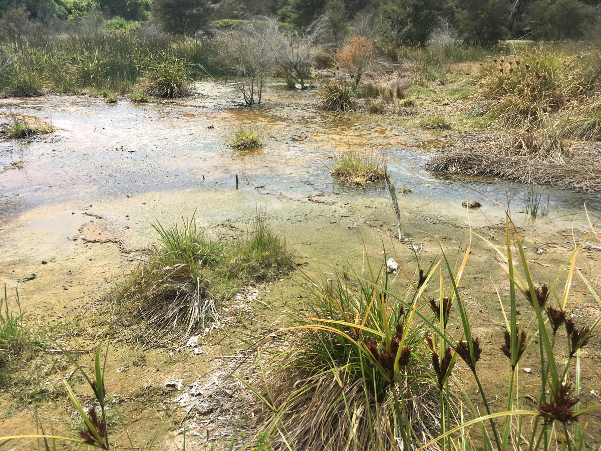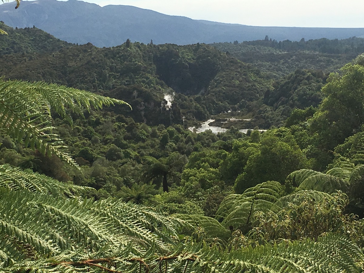 Looking over hill with hydrothermal lakes and plants -- December 23