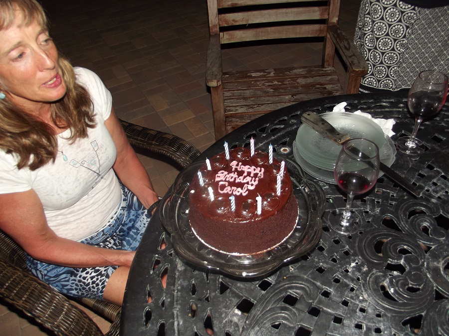 Carol blowing out her birthday candles