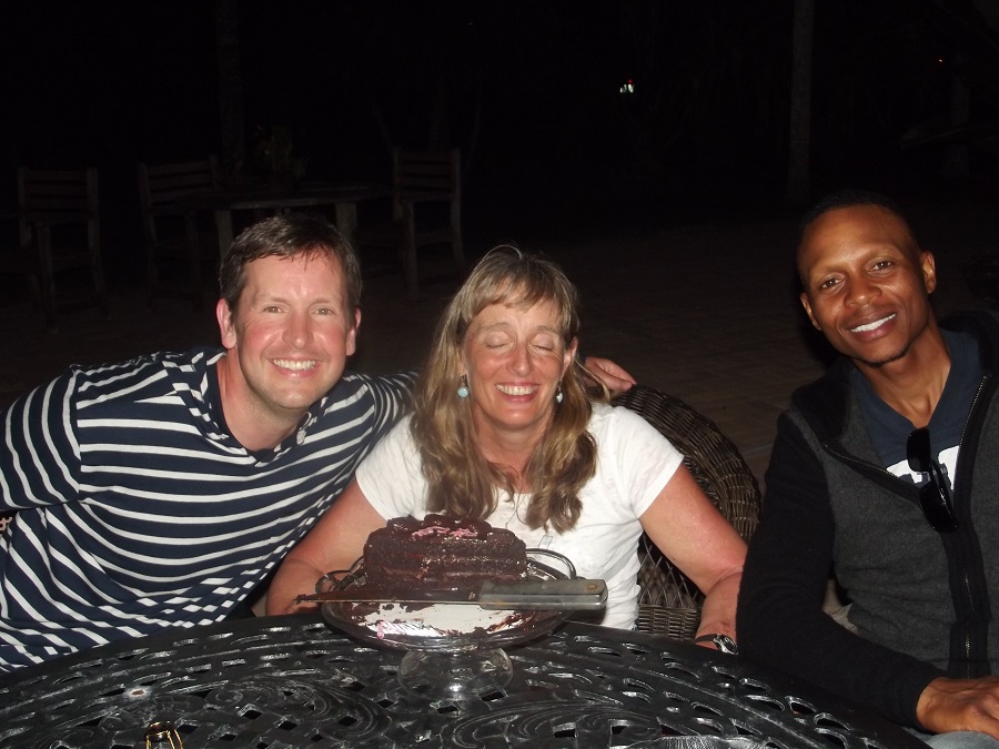 Rich, Carol, and Reg -- the boys secretly ordered and brought the cake and more