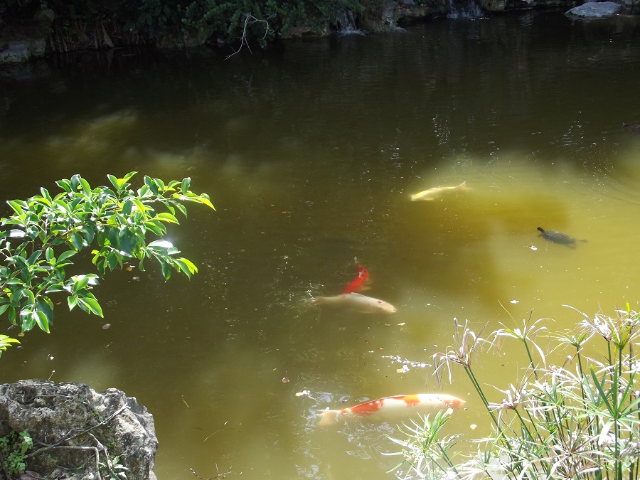 Fish and turtle in pool