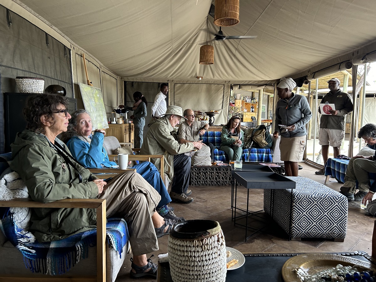 Harriet, Margaret, Doug, Ron, Lorraine, our camp manager, and Sku in lounge