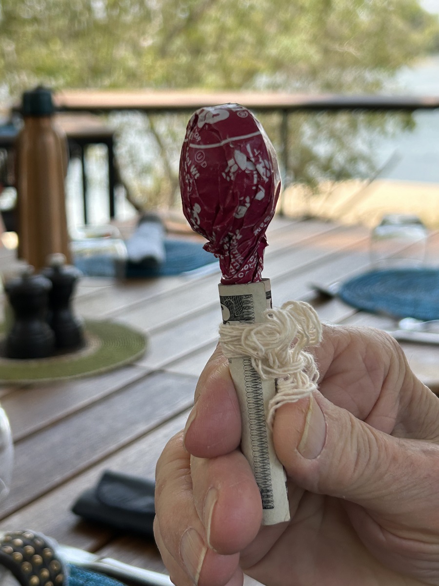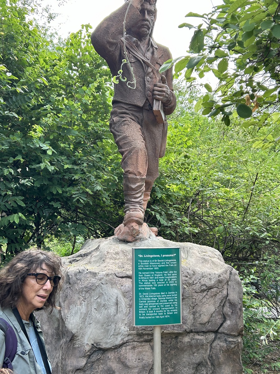 Zambia side of falls in Livingston, 12/8 -- Sign for Victoria Falls Bridge