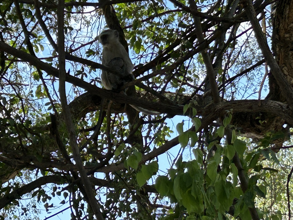 Monkey with child held close to her chest