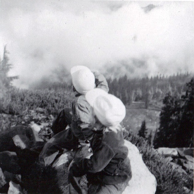 Andy and Carol looking at clouds and mountains from Diamond Head Challet