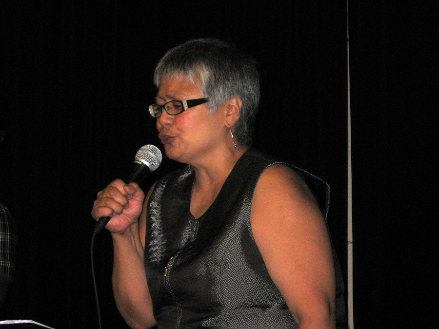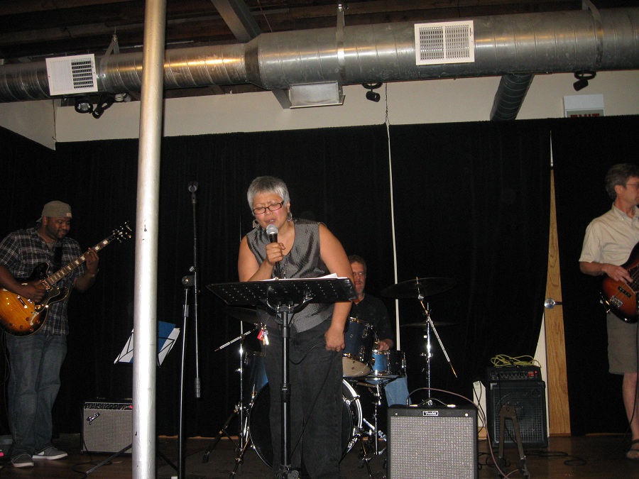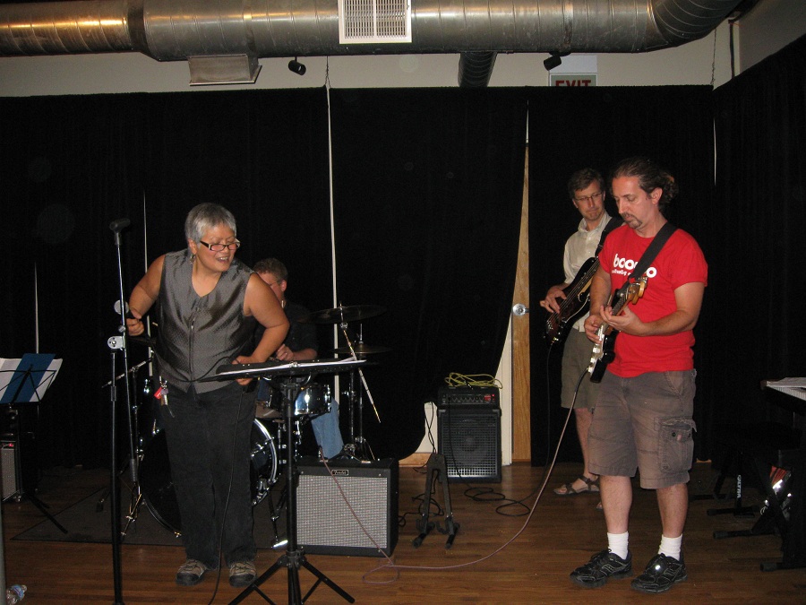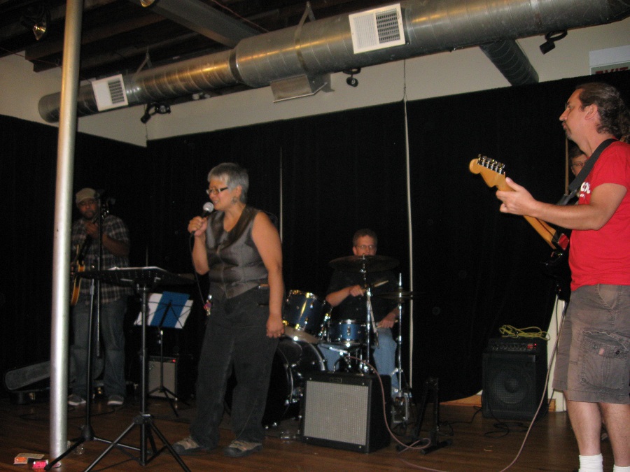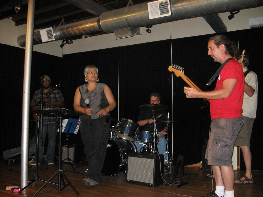 Alicia singing with band
