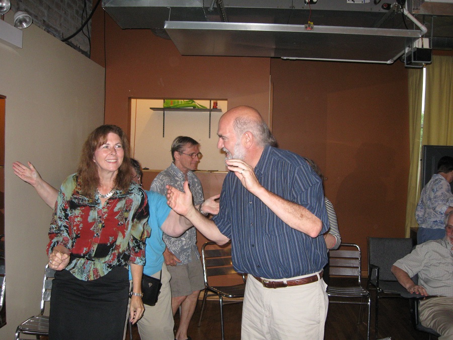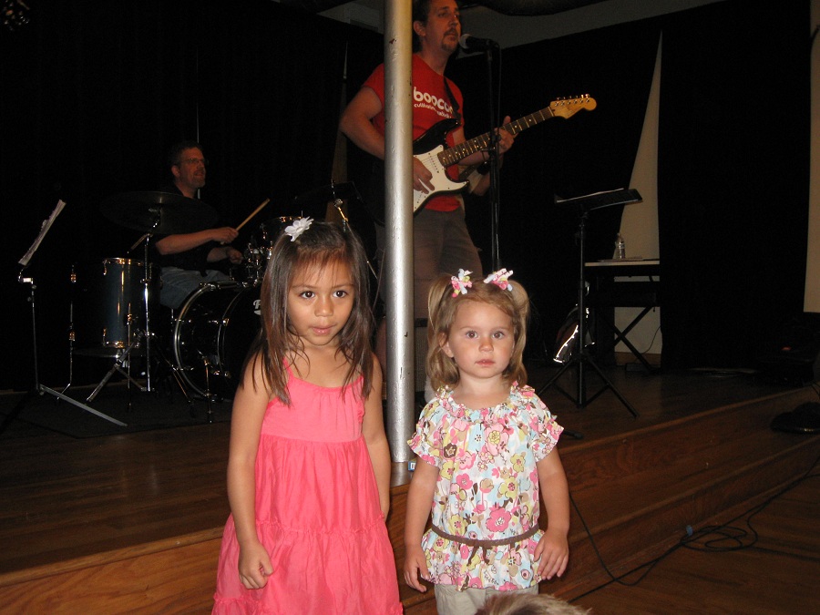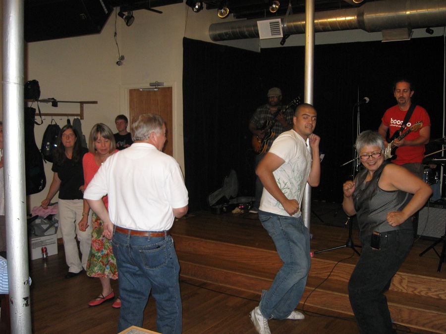 Sandra and many others dancing in back (away from where the kids were playing in front)