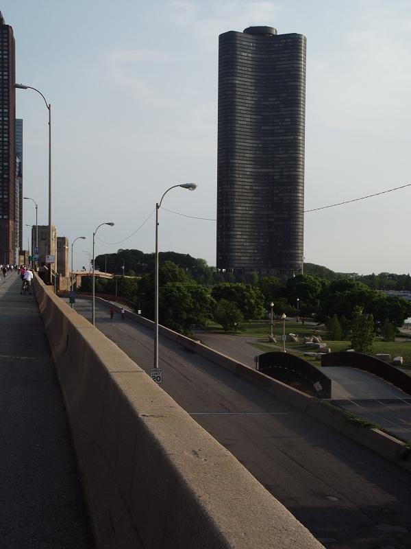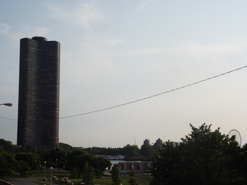 Lake Point Tower with the lakefront trail showing beneath it