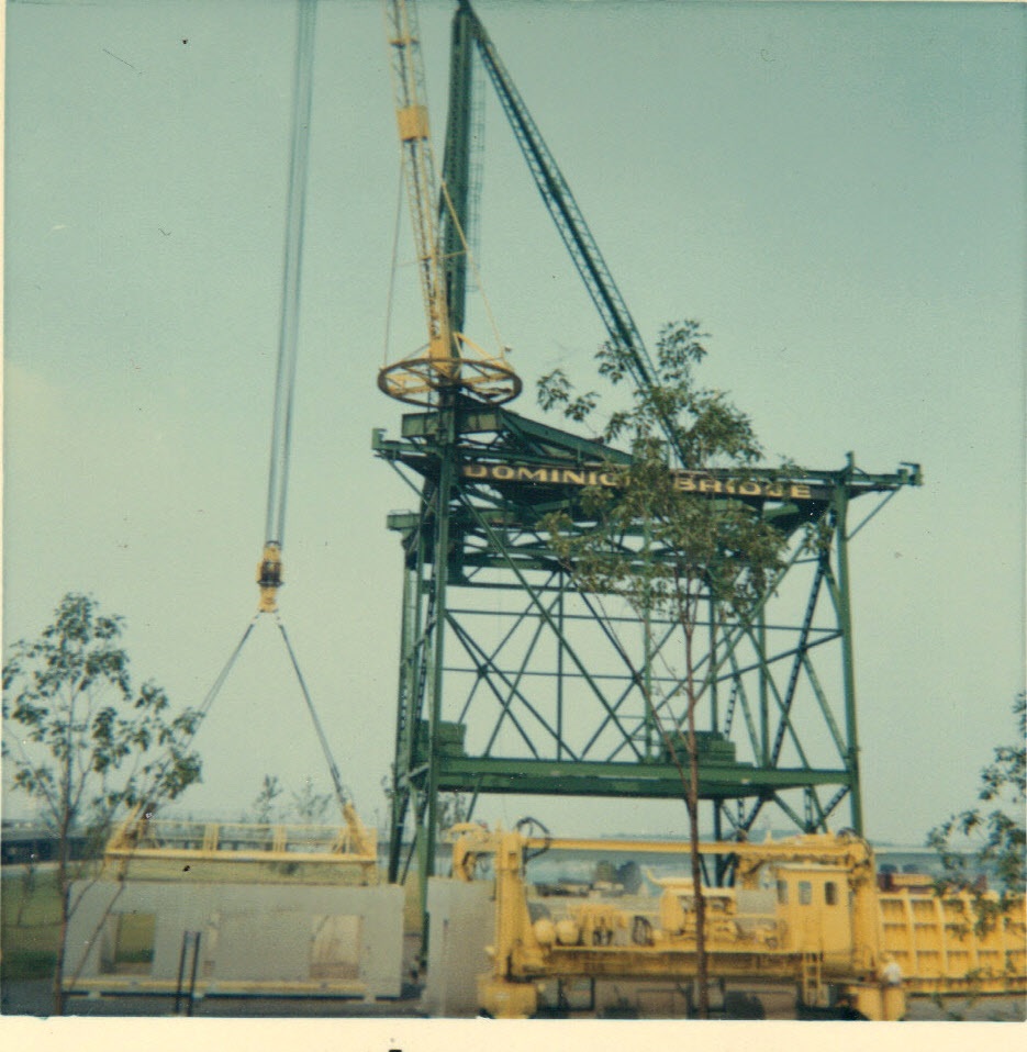Huge crane to lift concrete blocks Habitat 67 into place