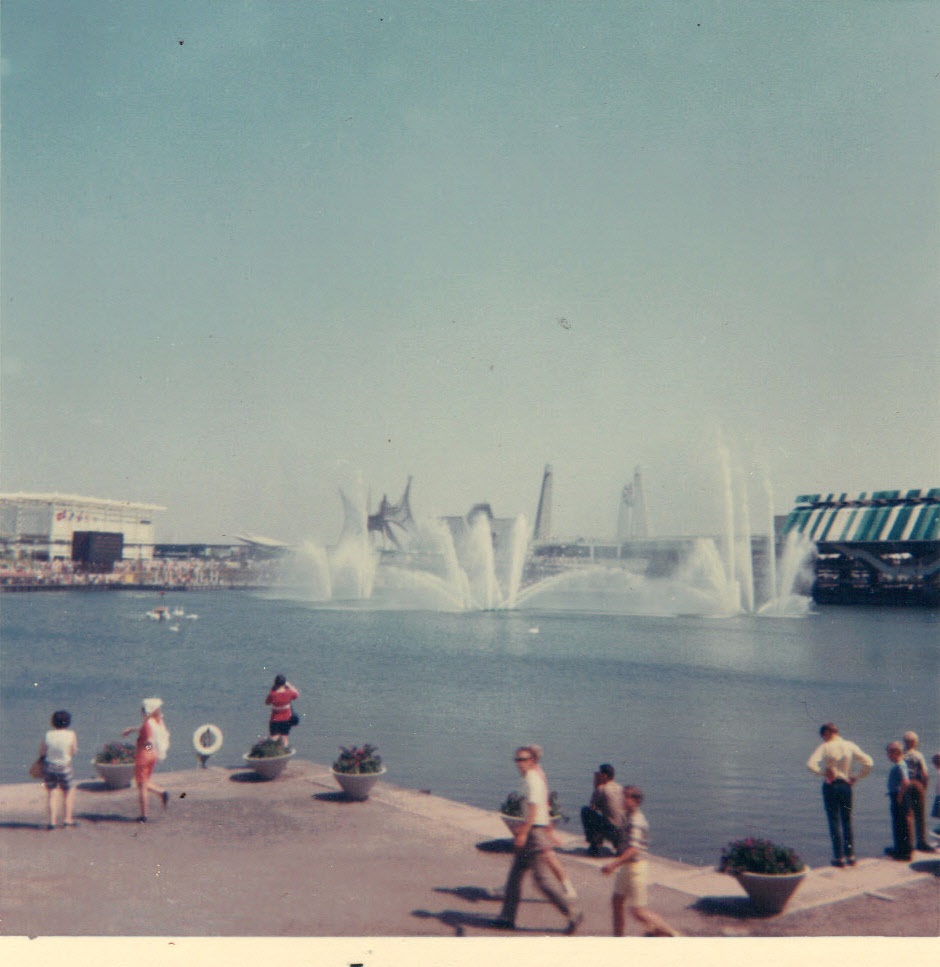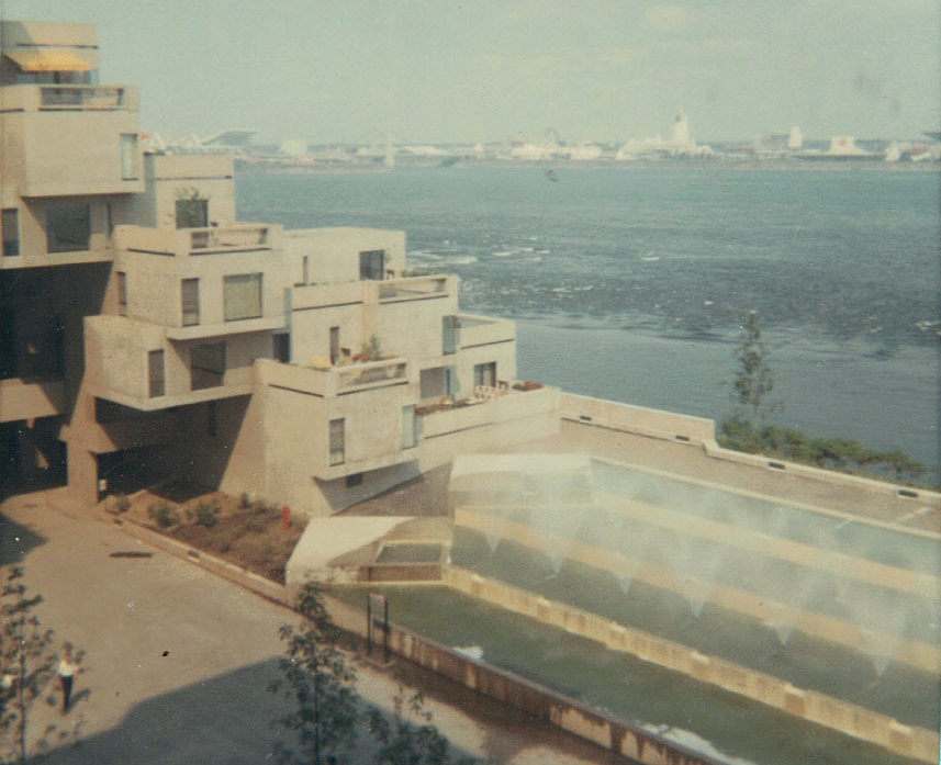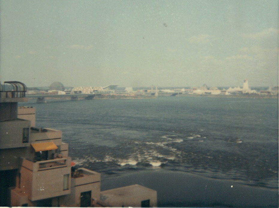 The rest of Expo far away across river from Habitat 67 -- I can recognise the Russian and British pavalions
