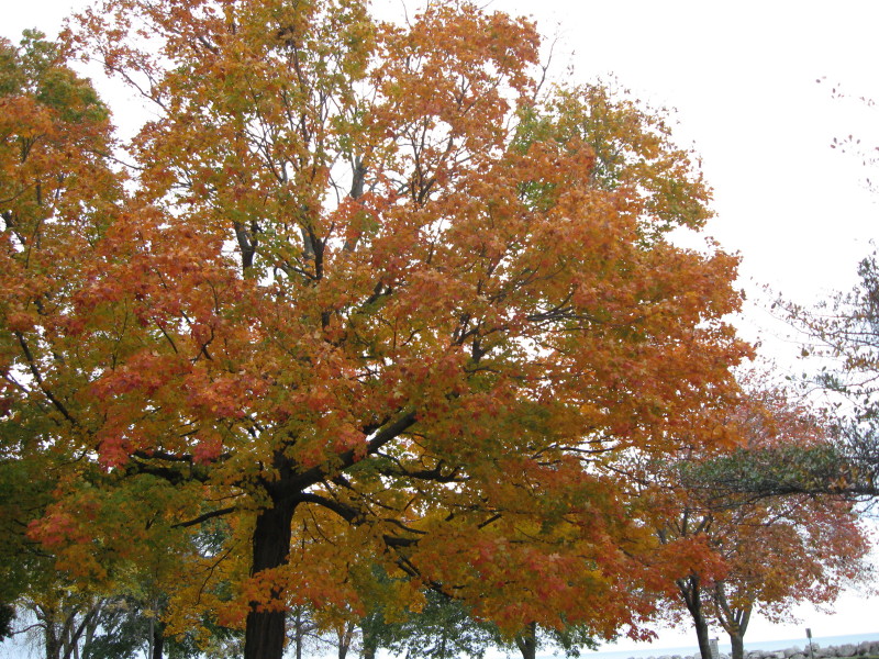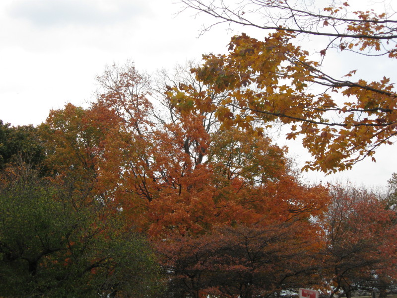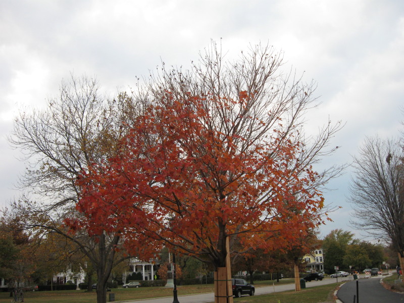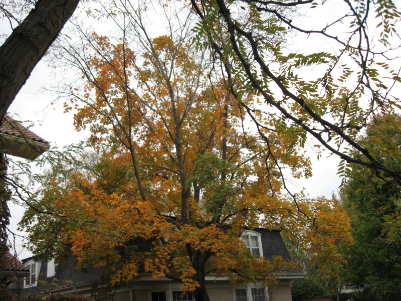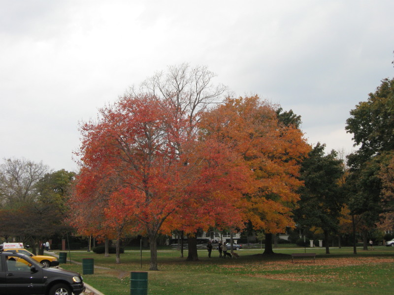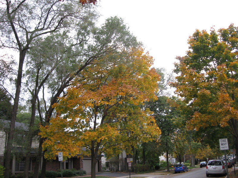 Orange yellow trees in Clark Square just south of Main in Evanston