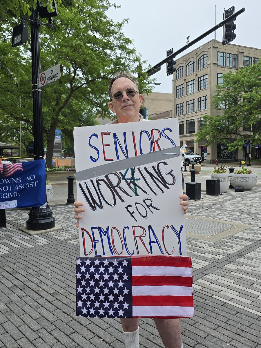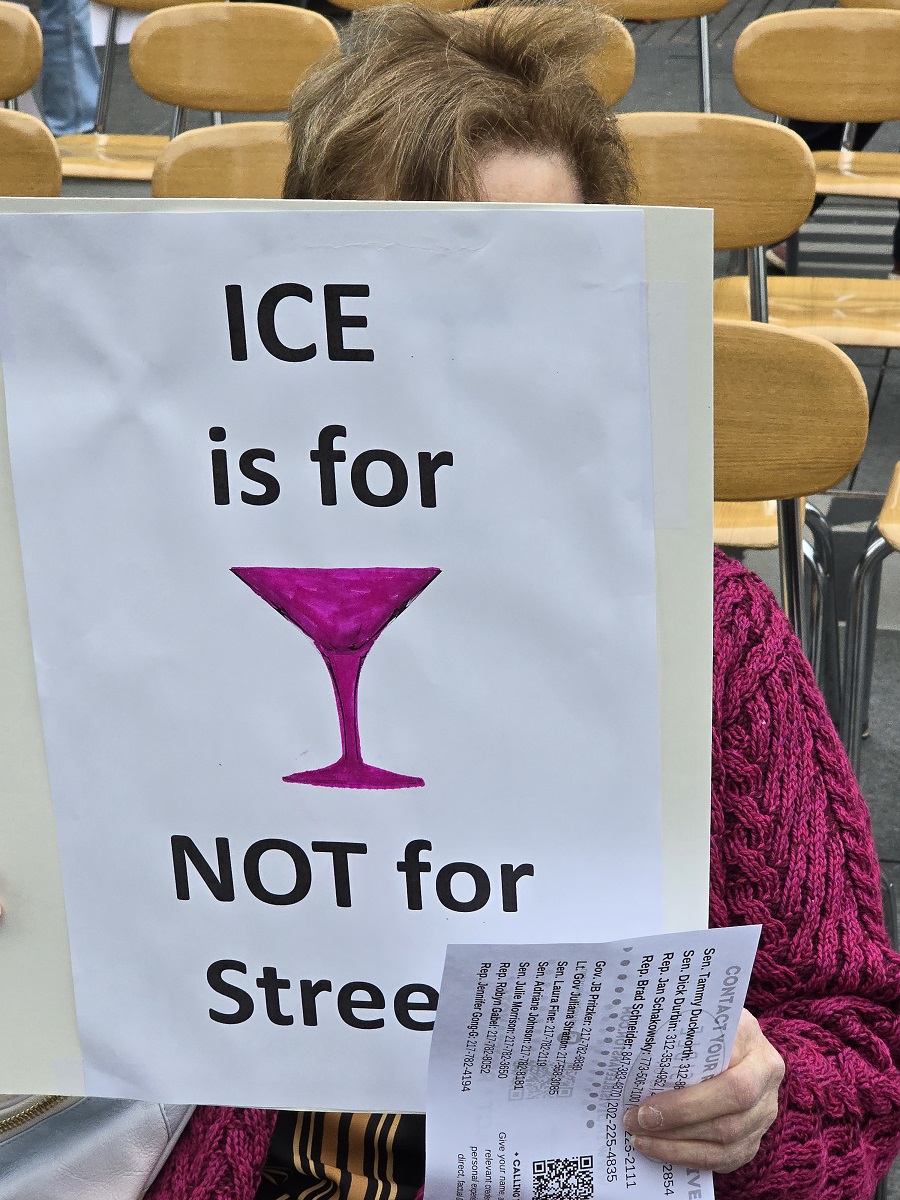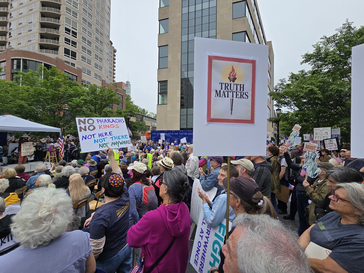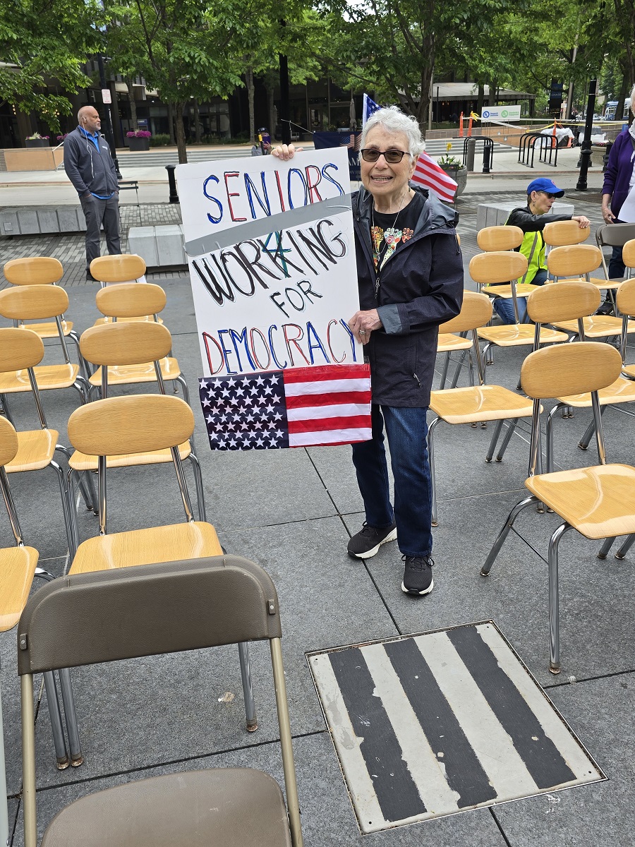 Rev, Eileen Wiviott from Unitarian Church speaking in Fountain Square