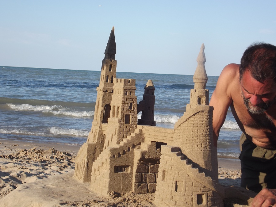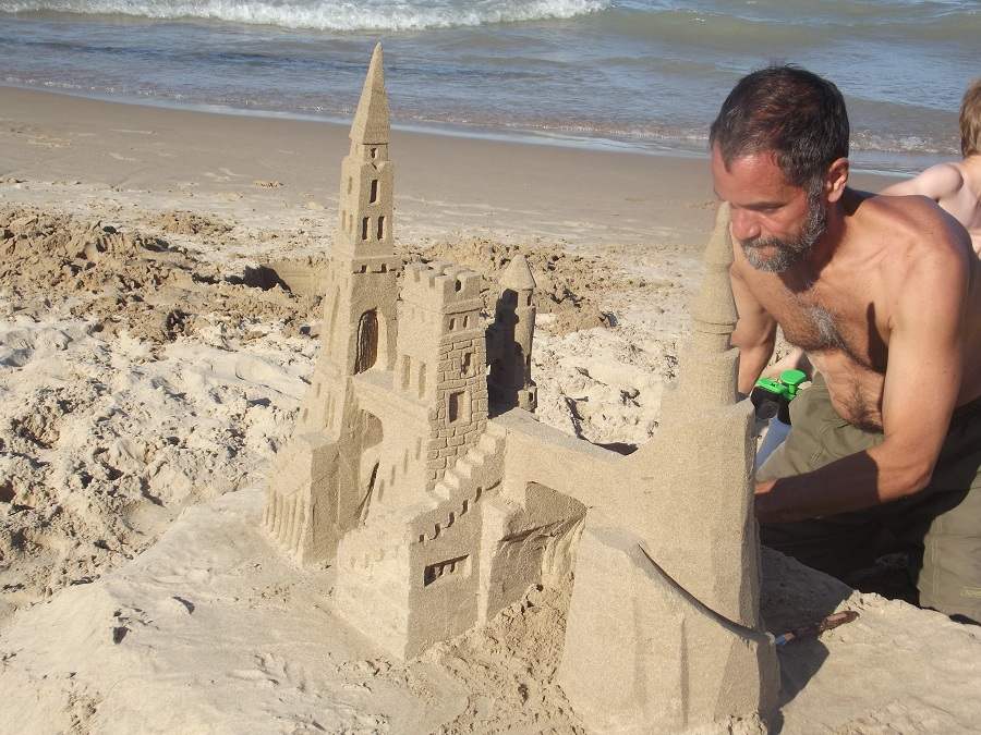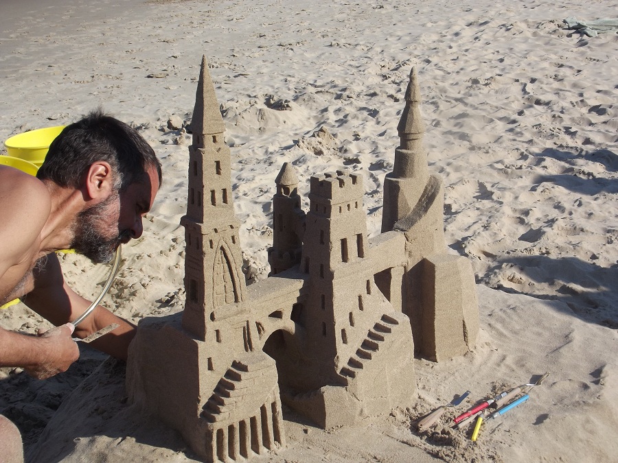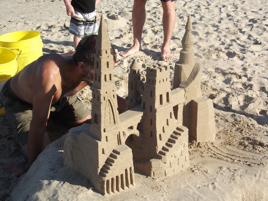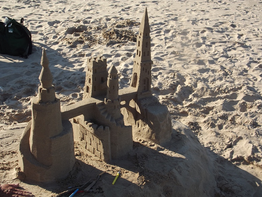 Stairs, fine stonework, windows and larger stonework added to south tower