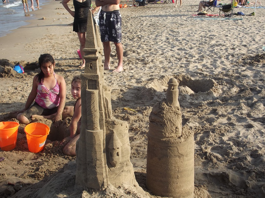 New west domed tower (just under yellow bucket) with light through its 90 degree "see through" window, as well as the top one
