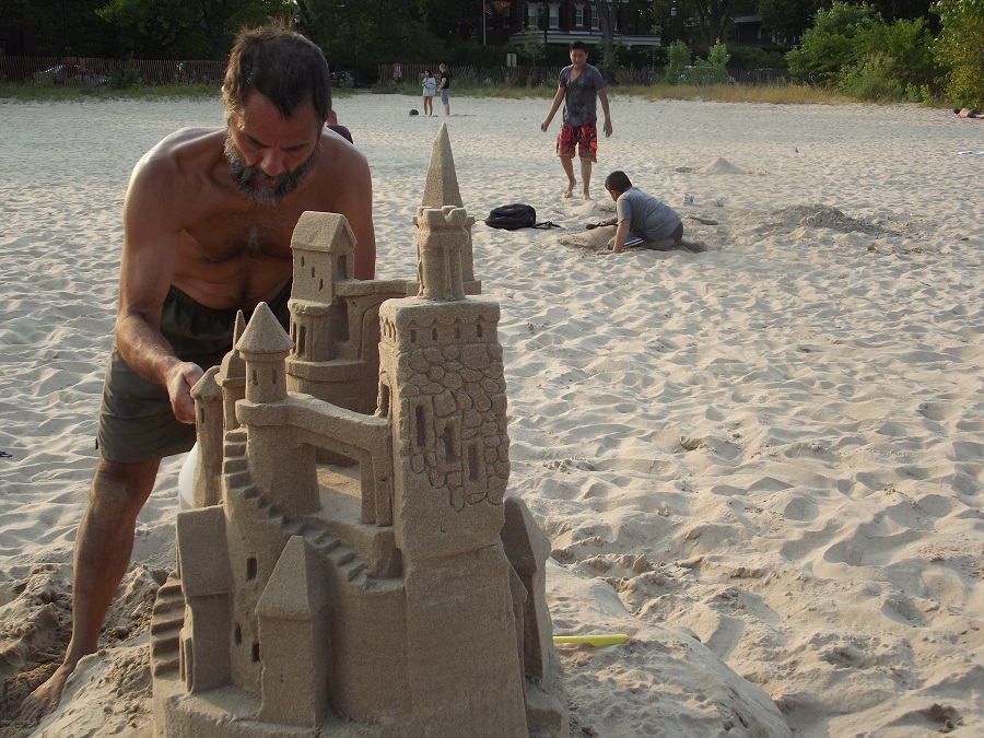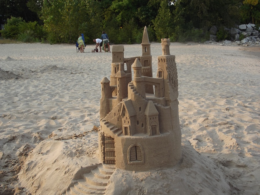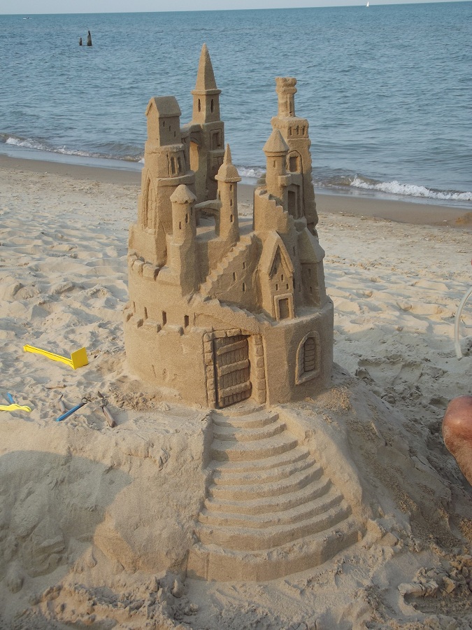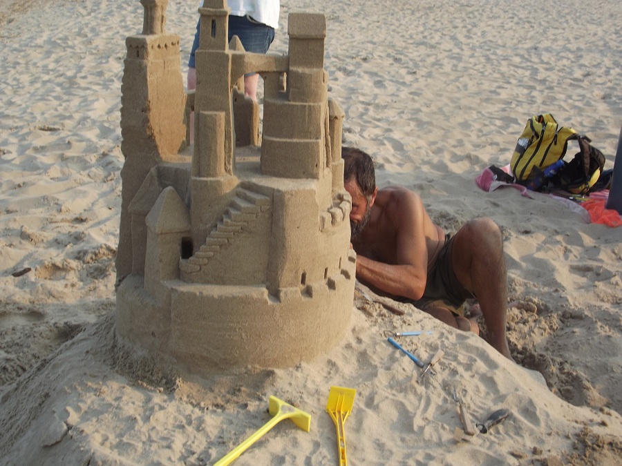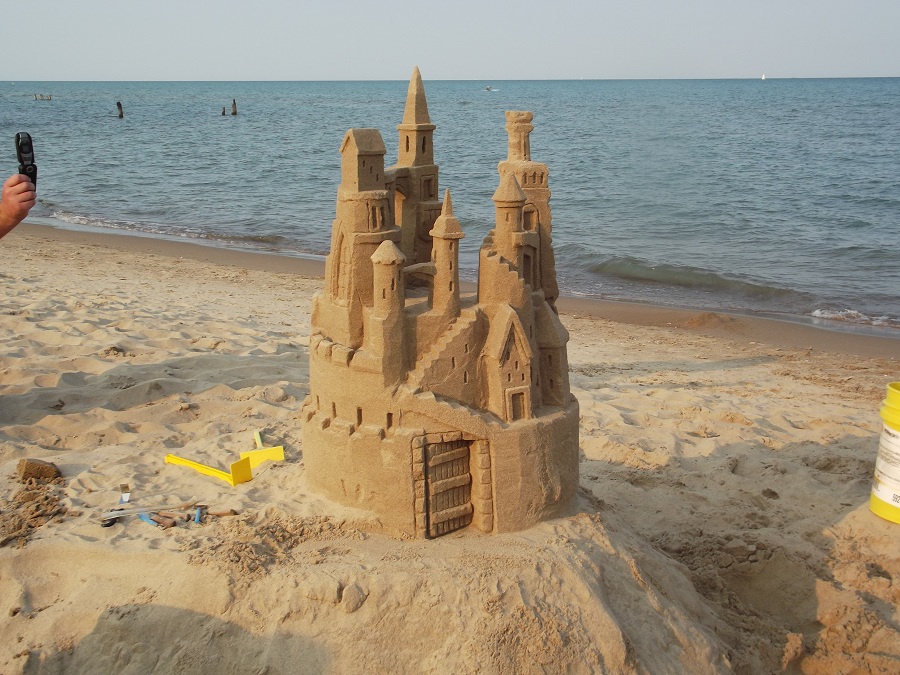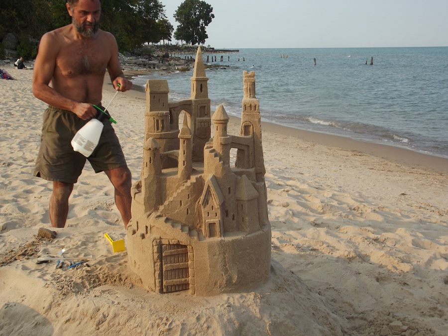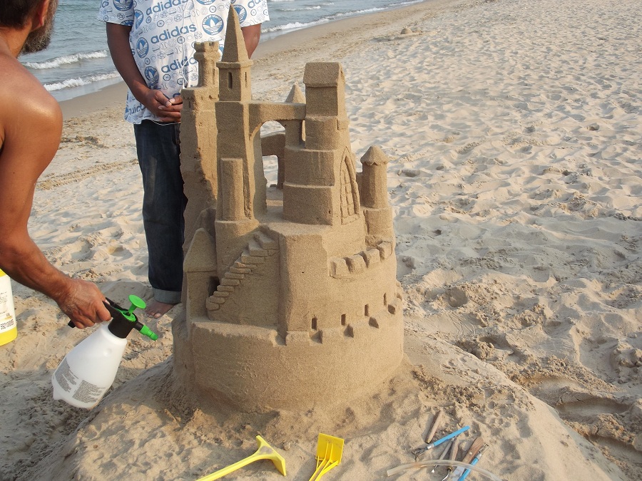 Spraying castle with water