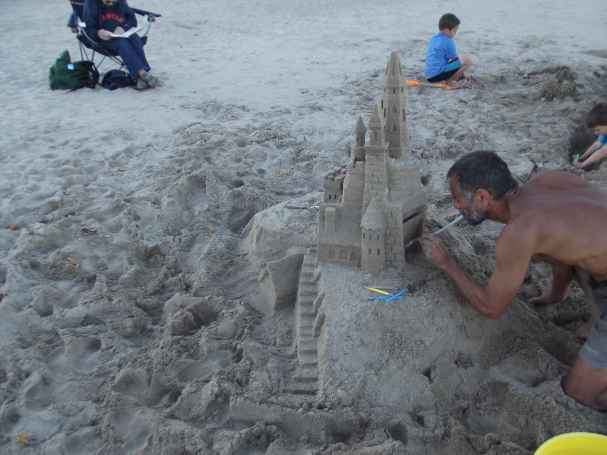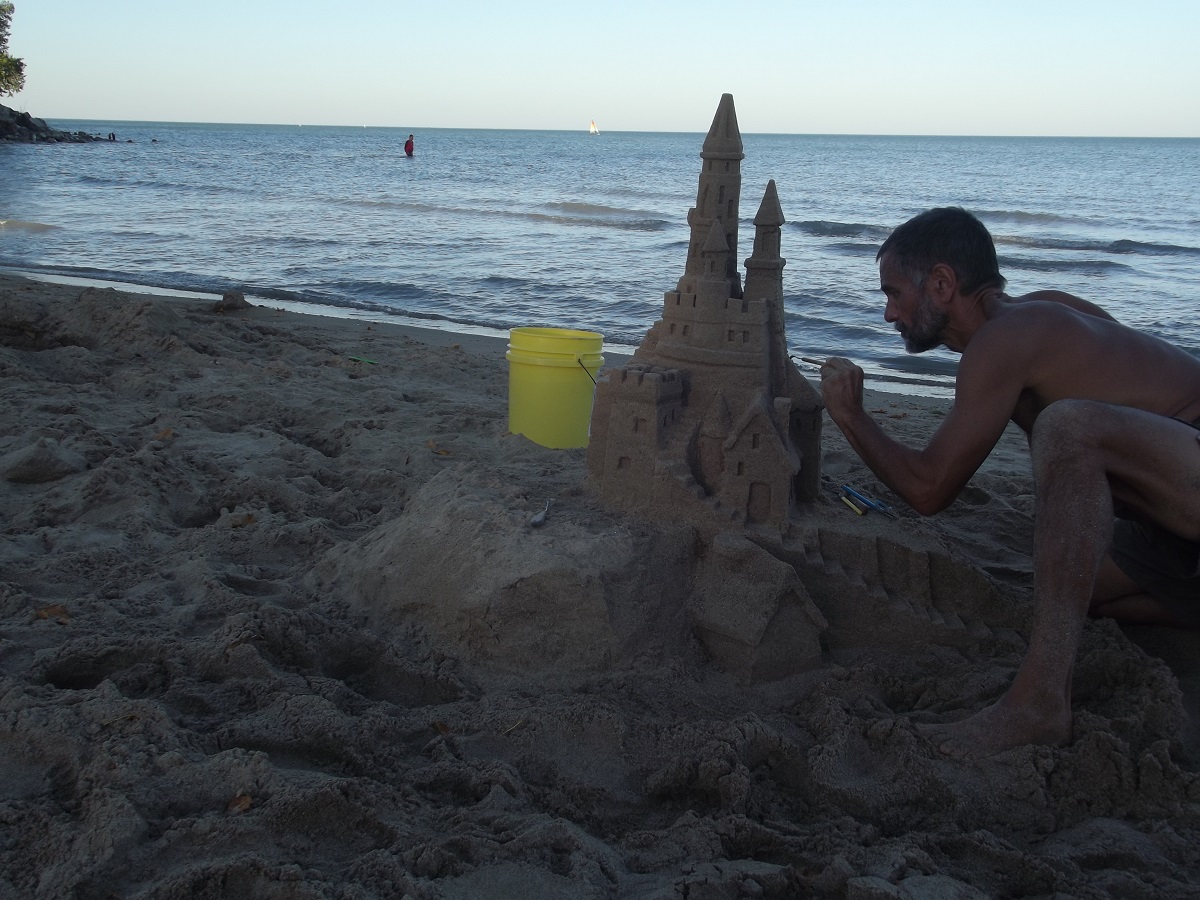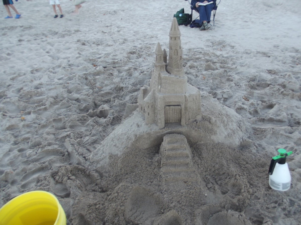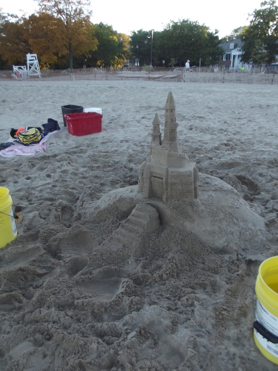 The castle from the west -- we've lost the sun but it still is hitting the white sailboat