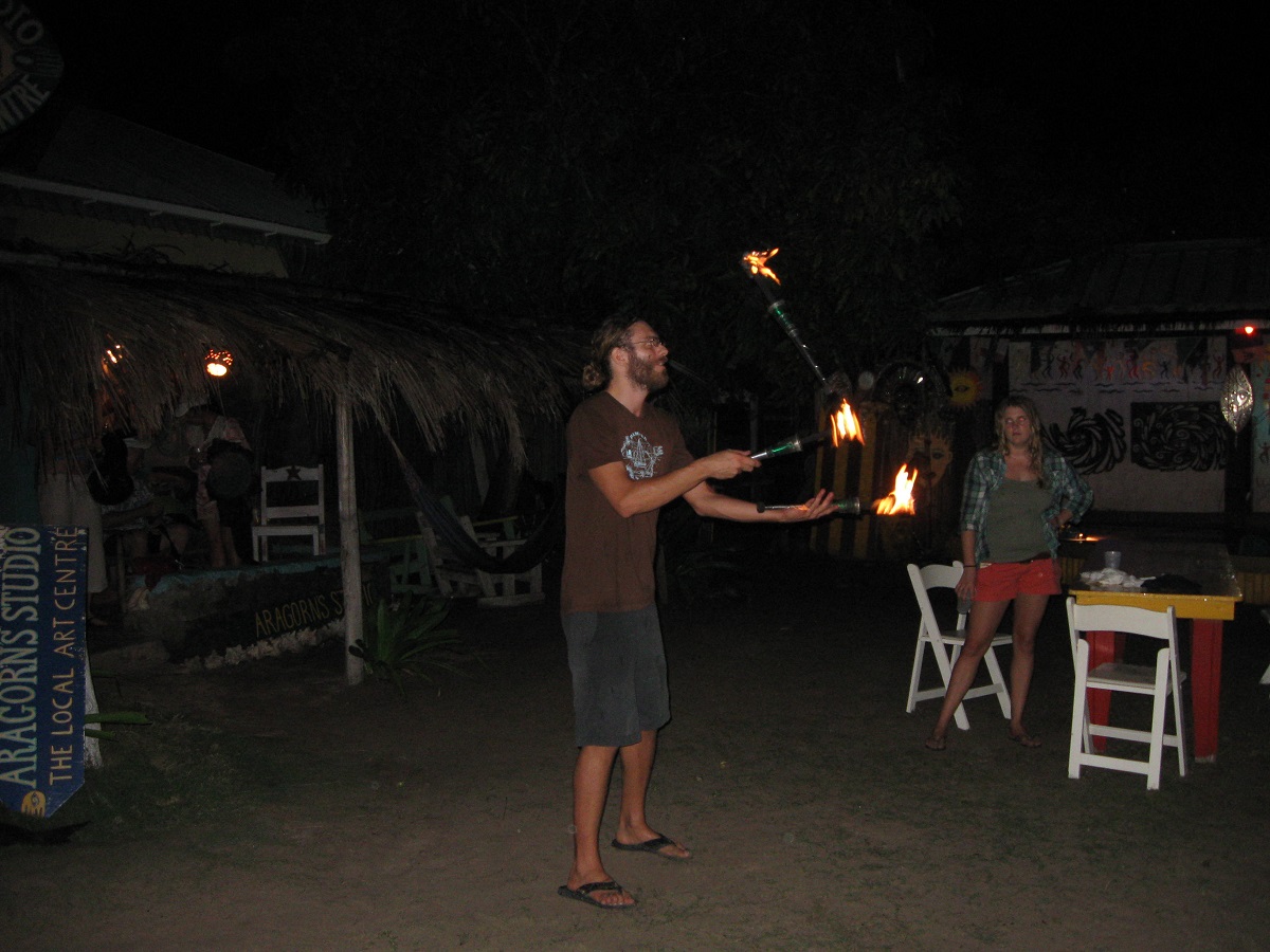 Juggling fire sticks