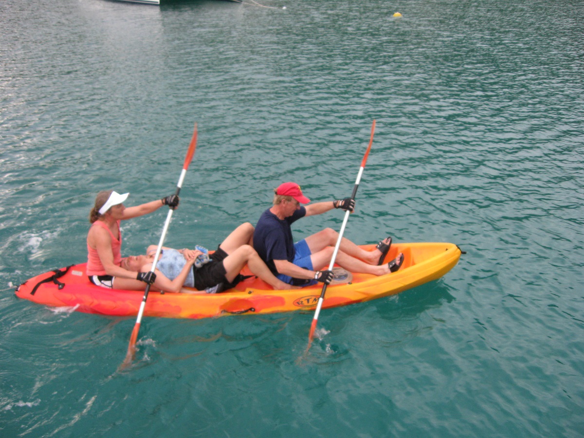 Next morning, Carol, Andy, and Dorothy on the way to Jost Van Dyke