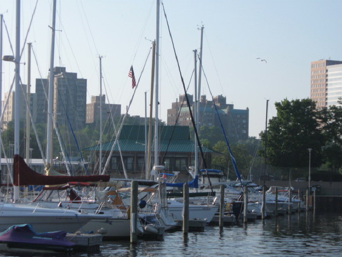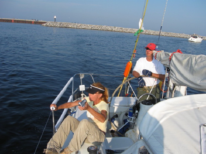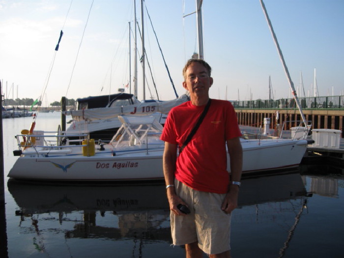 Betsy with our sailboat, Dos Aguila (Two Eagles) -- Monday, 8/2/10