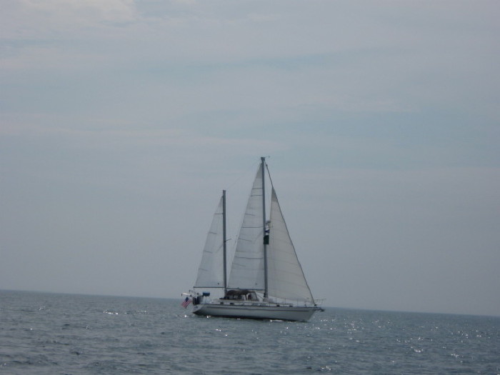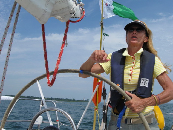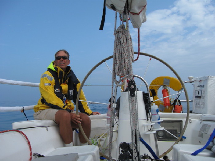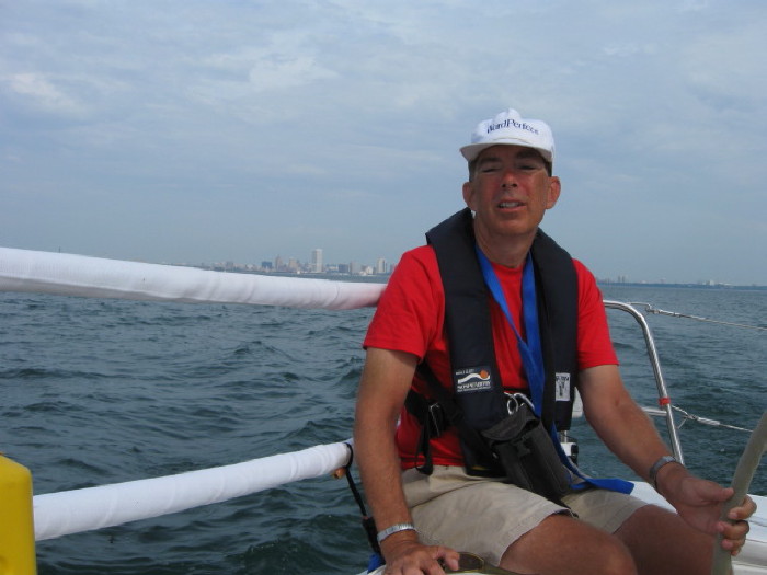 Andy steering on our final journey from Waukegan to Montrose Harbor in Chicago -- Tuesday, 8/3/10