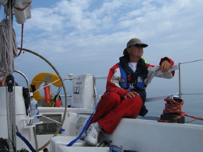 Bill carefullly monitoring and observing our location and course to Montrose Harbor in Chicago