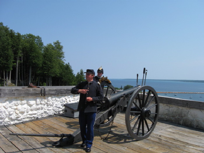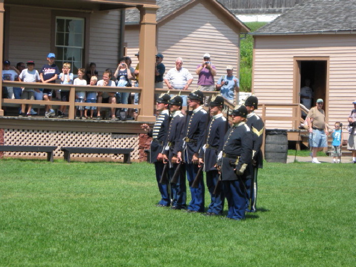 Soldiers on green in Fort Mackinac -- Monday, 7/26/10