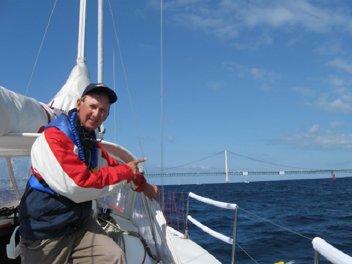 Captain Bill with the Mackinac bridge