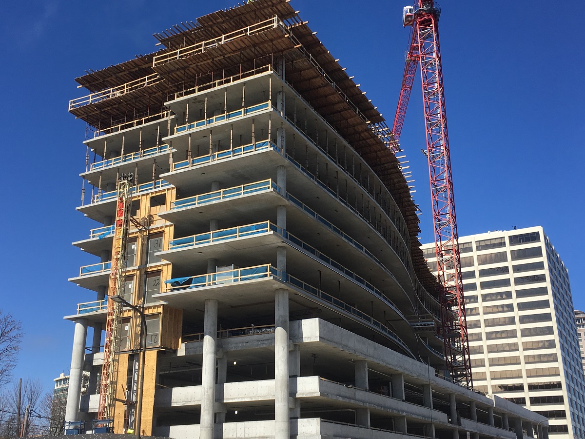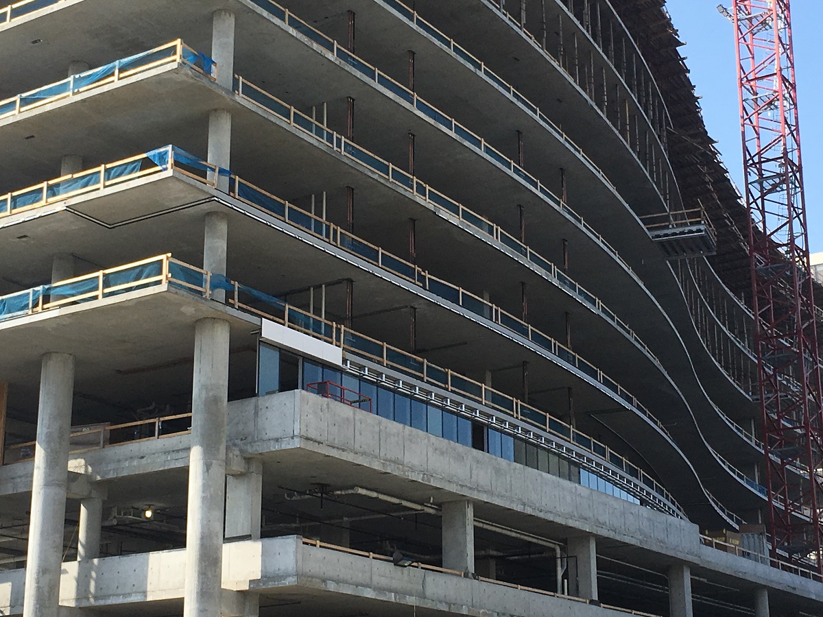 Pouring concrete on 13th flooor and windows on 4th and 5th floors -- April 16, 2019