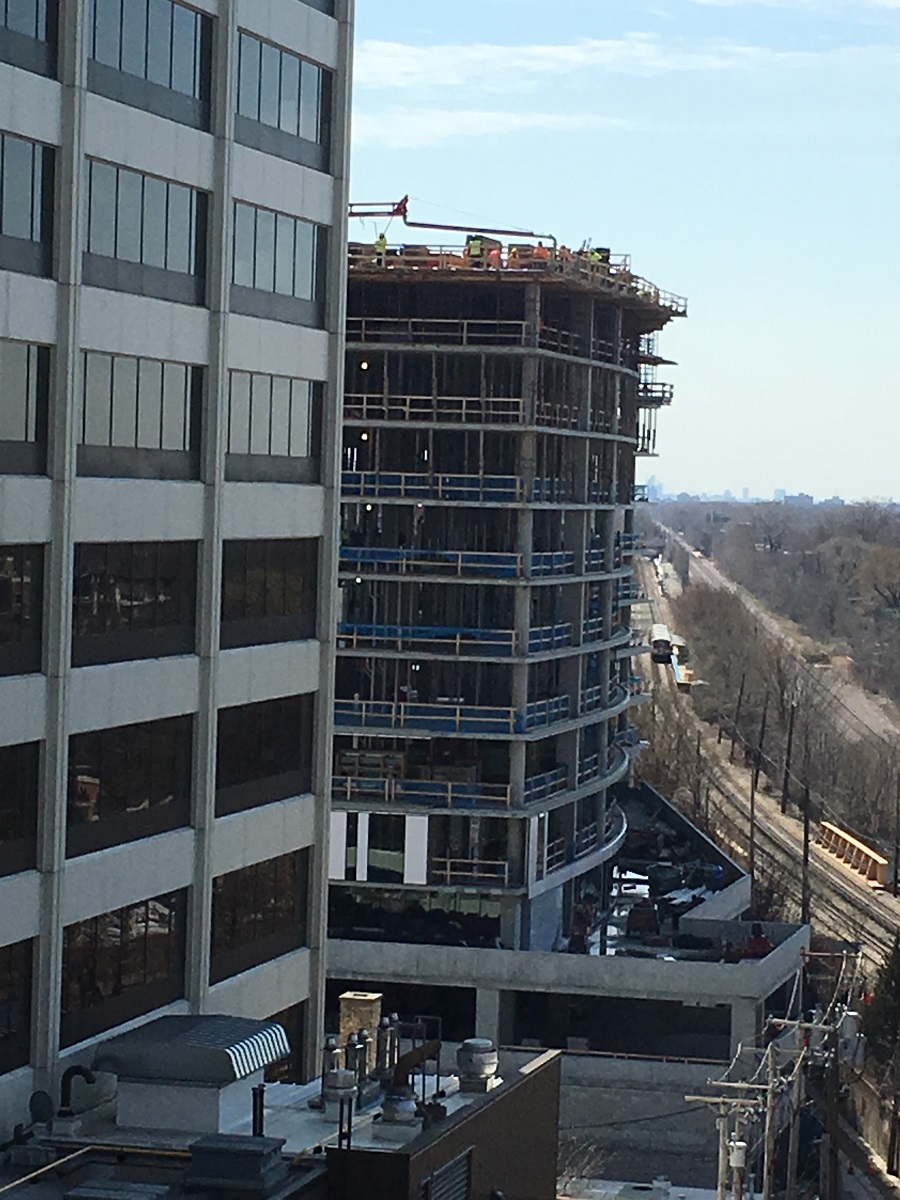 All forms and pillars for floor 10 completed, Pillers and forms for floor 11 started, Only top of Willis Tower visable -- March 17, 2019