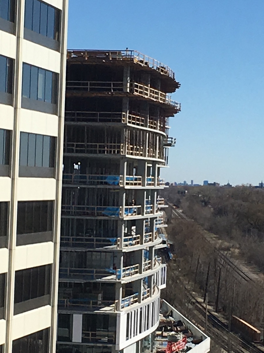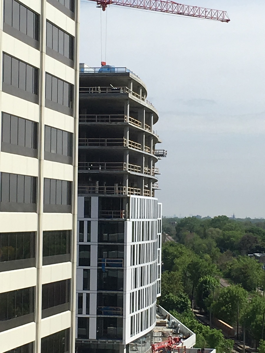Structure through floor 15 and outer windows and balconies through floor 10 from my balcony -- May 29, 2019