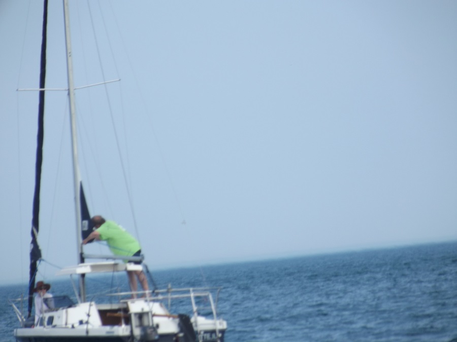 Another sailboat flying past us -- we only had our jib up and even with the engine draging in the water, we made it up to 5.4 knots in the larger gusts from the south