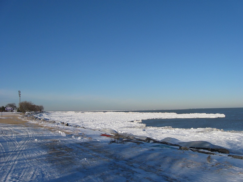 Farthest north on NU landfill showing ice on Lake Michigan