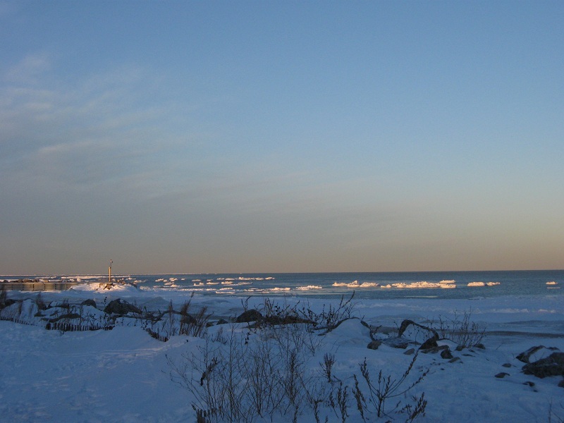 Lake Michigan with icebergs