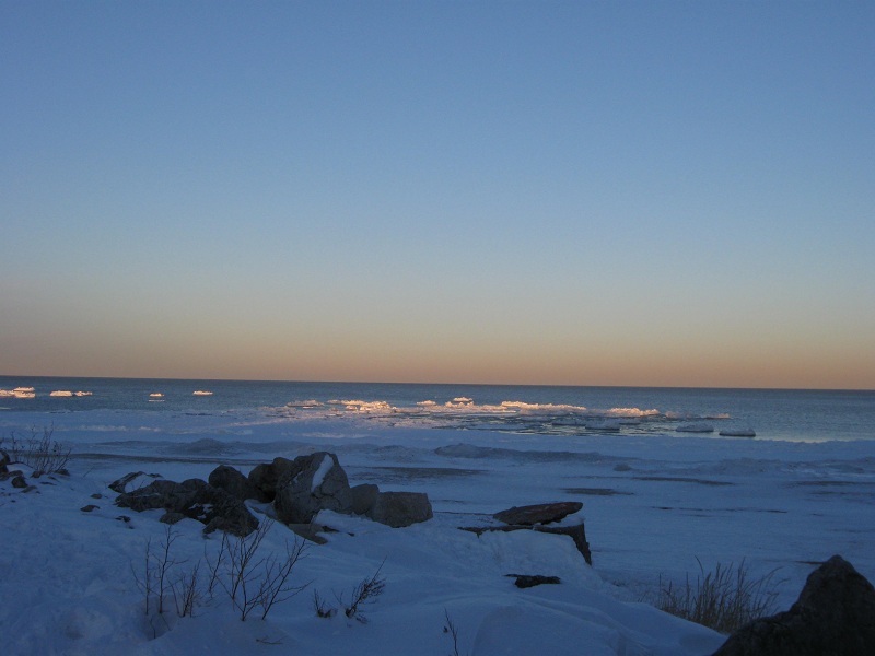 Icebergs on Lake Michigan in late afternoon sun