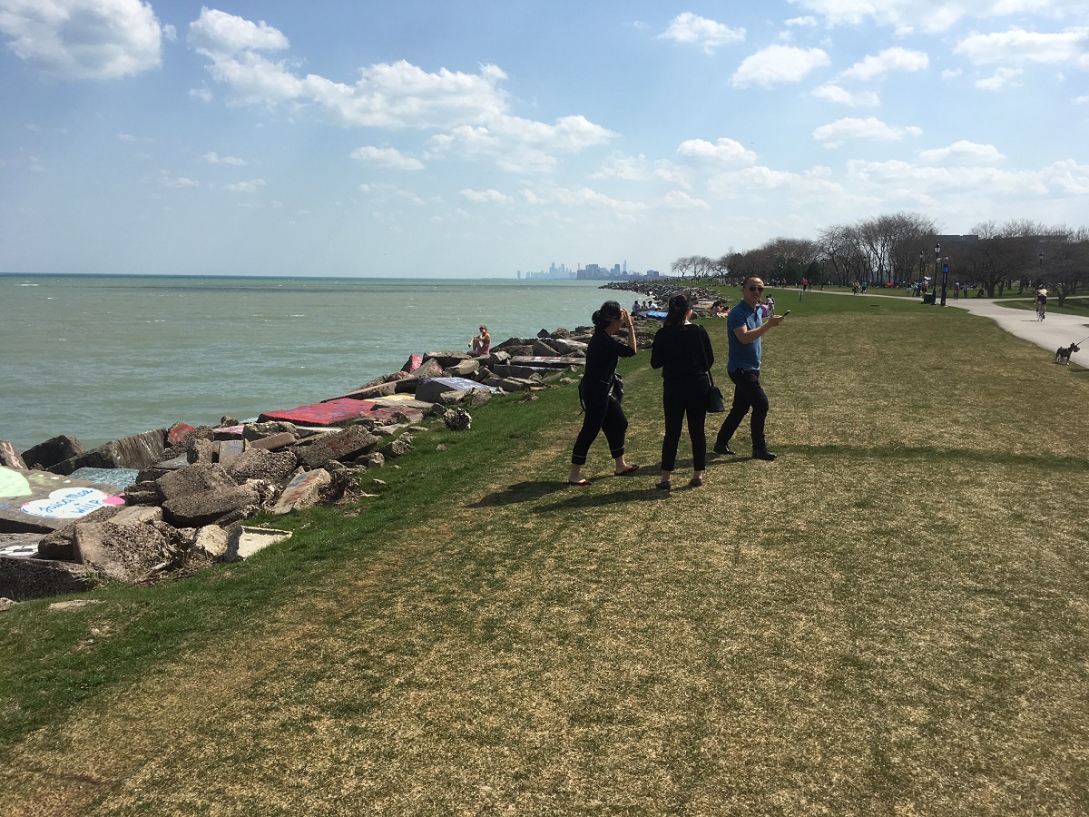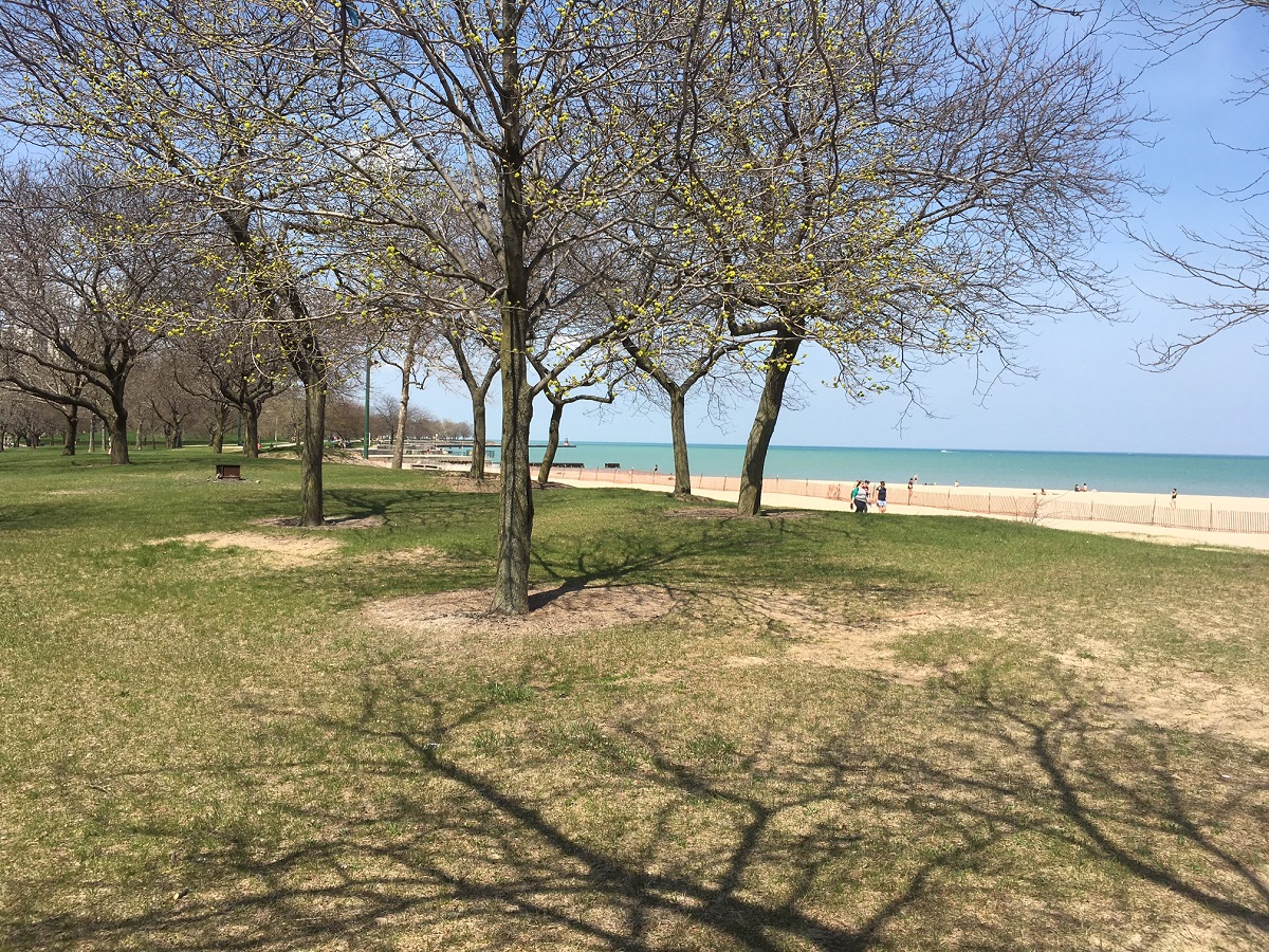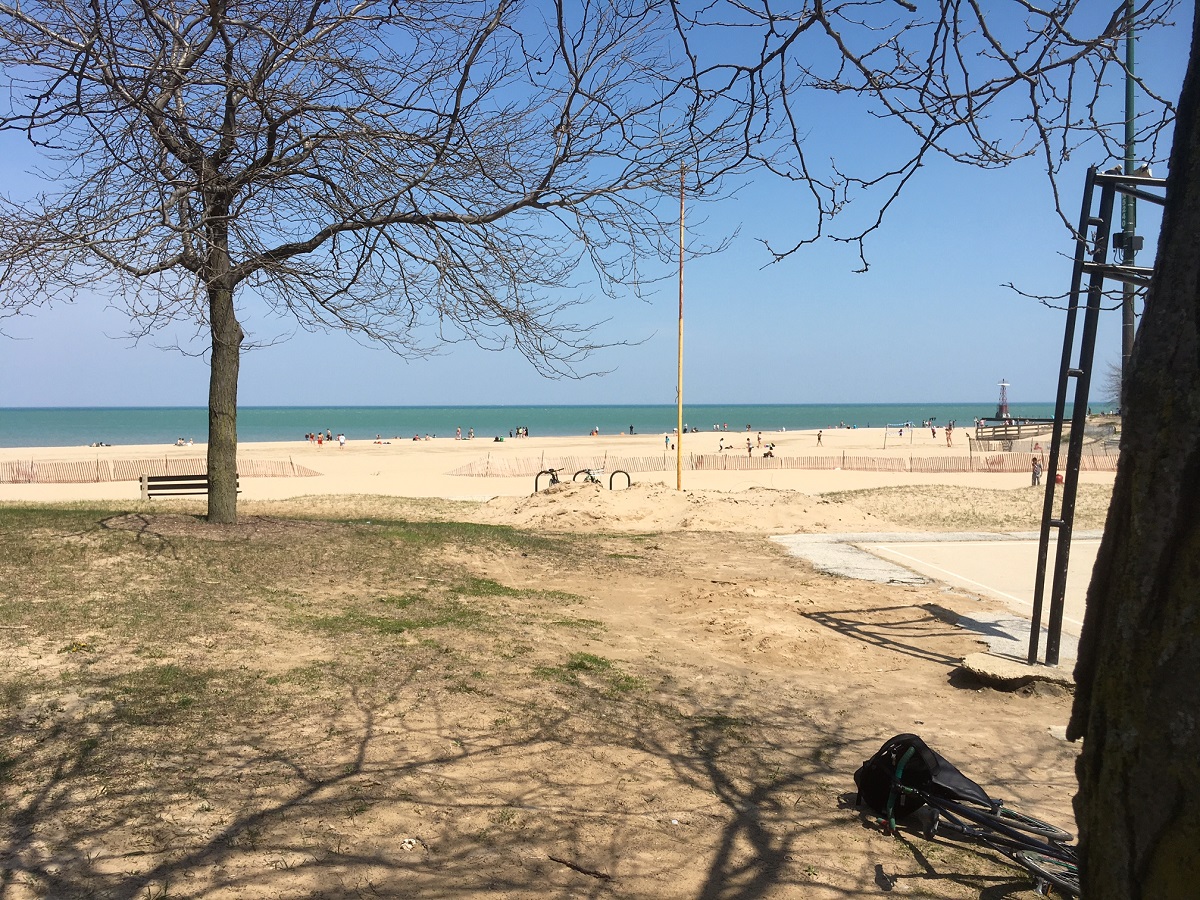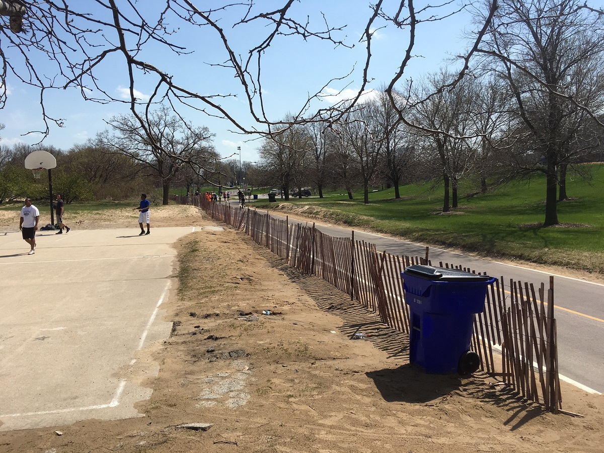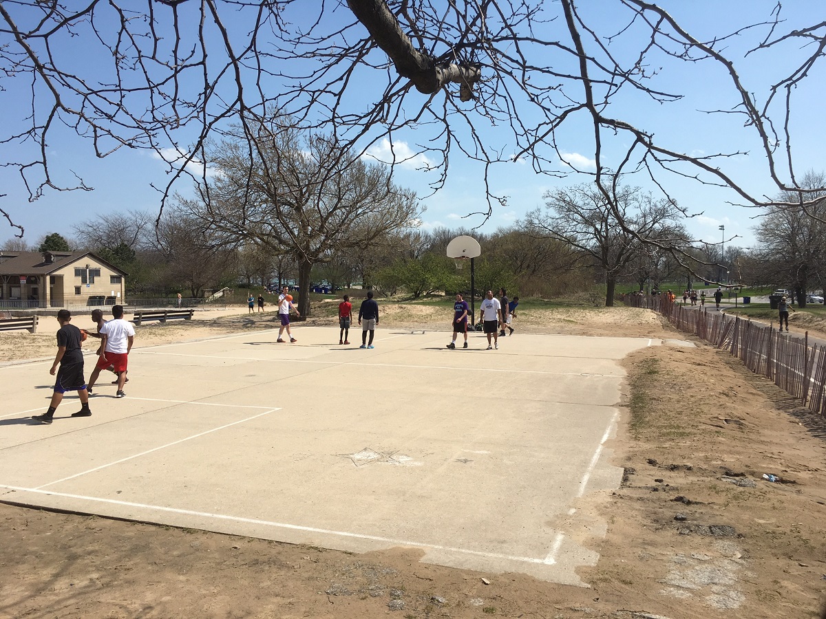 Guys playing basketball in Lincoln Park just north of Foster, Chicago