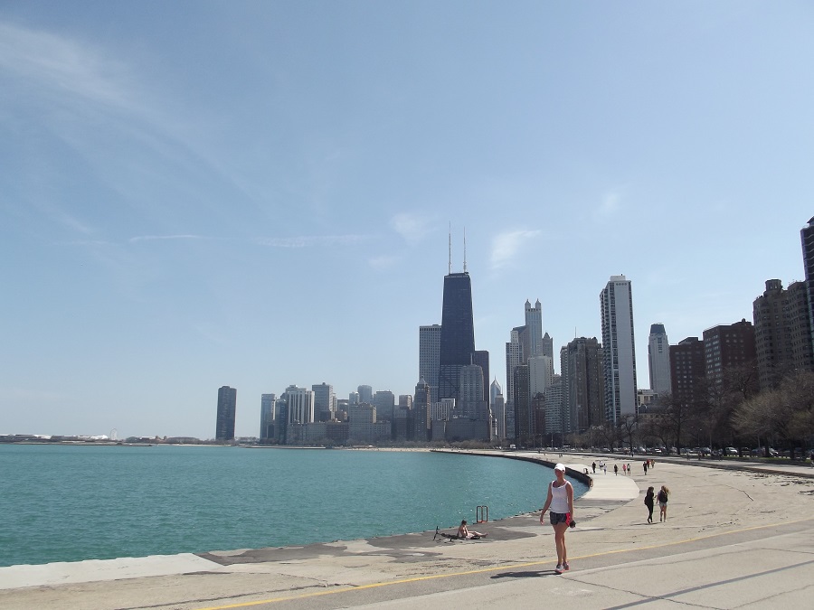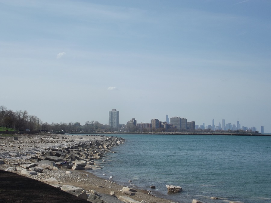Approaching downtoto Chicago showing Navy Pier, Lake Point Tower, and Hancock