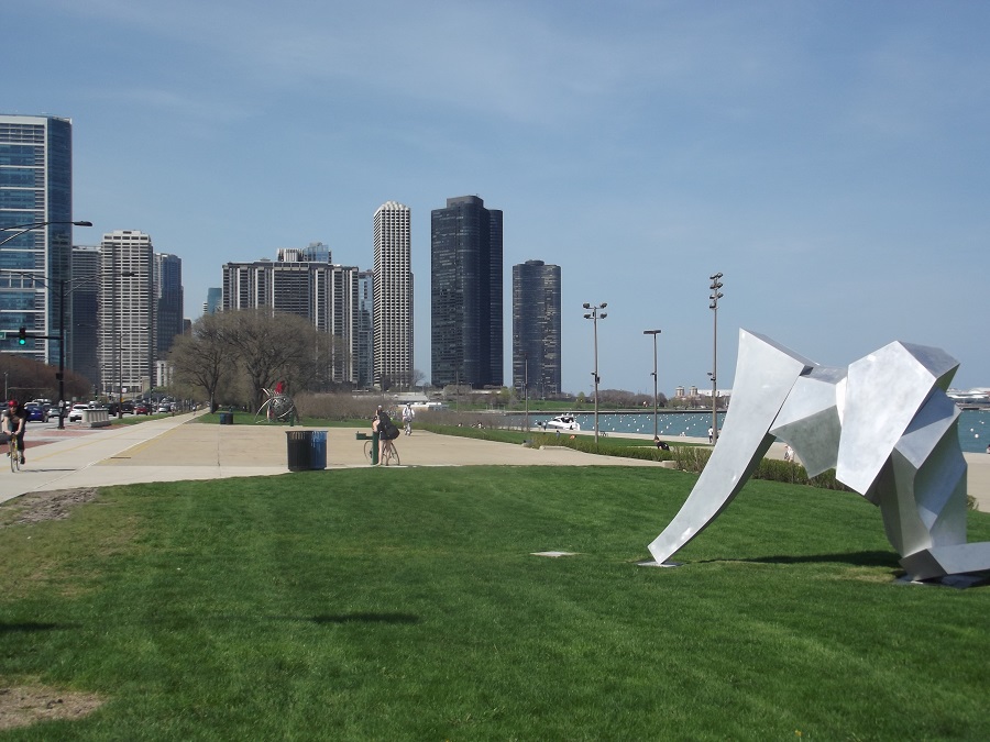 Lots of new modern art on lake side of Outer Drive opposite Grant Park