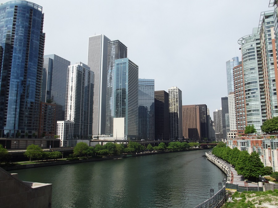 Chicago River showing Amoco building, Marina City and many more
