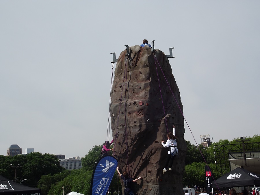 Children rock climbing in Grant Park end festival
