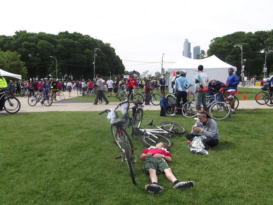 Some cyclists are totally worn out (I biked 57 milles [Evanston, Hyde Park, Bryn Mawr, Grant Park, then home], and was hardly worn out at all)