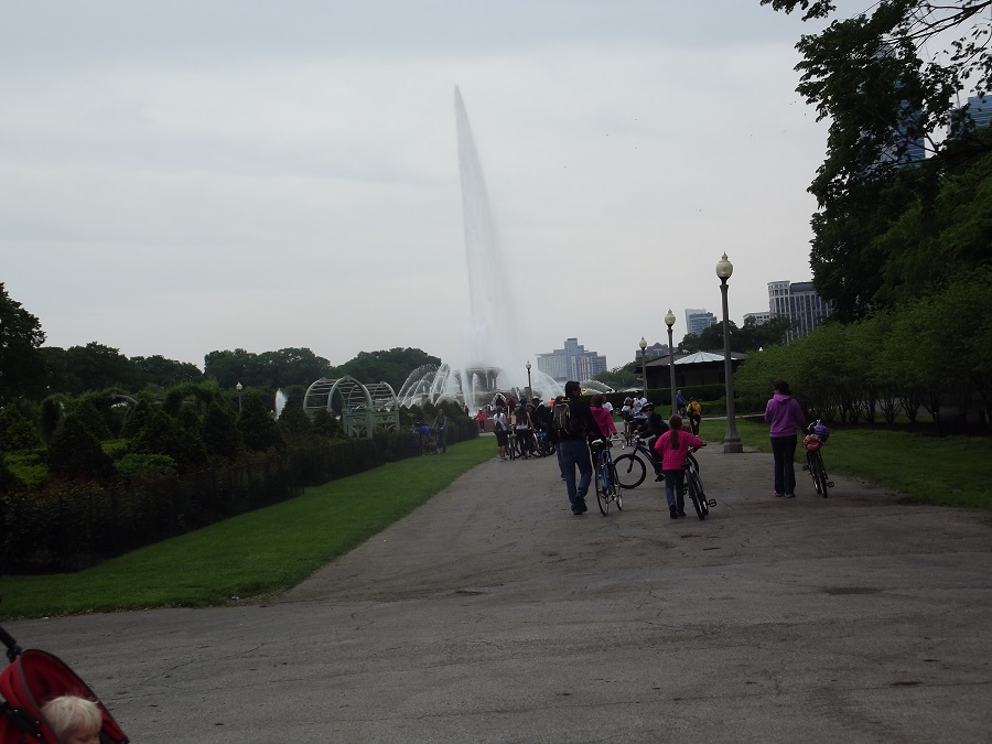 The Buckingham Fountain turned up all the way -- I changed then biked home the usual way along the lakefront trail