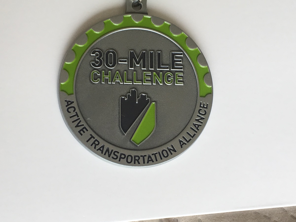 Andy's 30-Mile Challange medal -- He actually rode closer to 42 miles from downtown Evanston and back