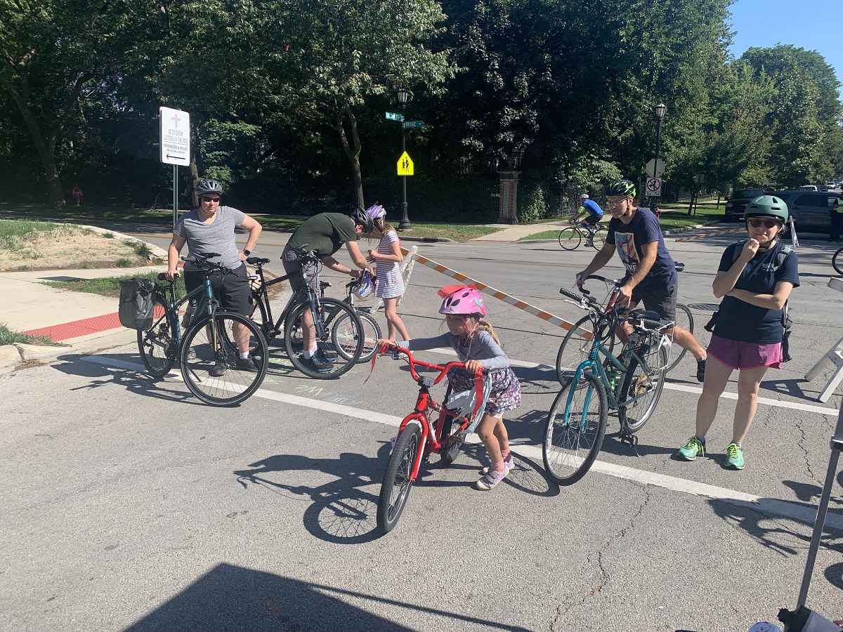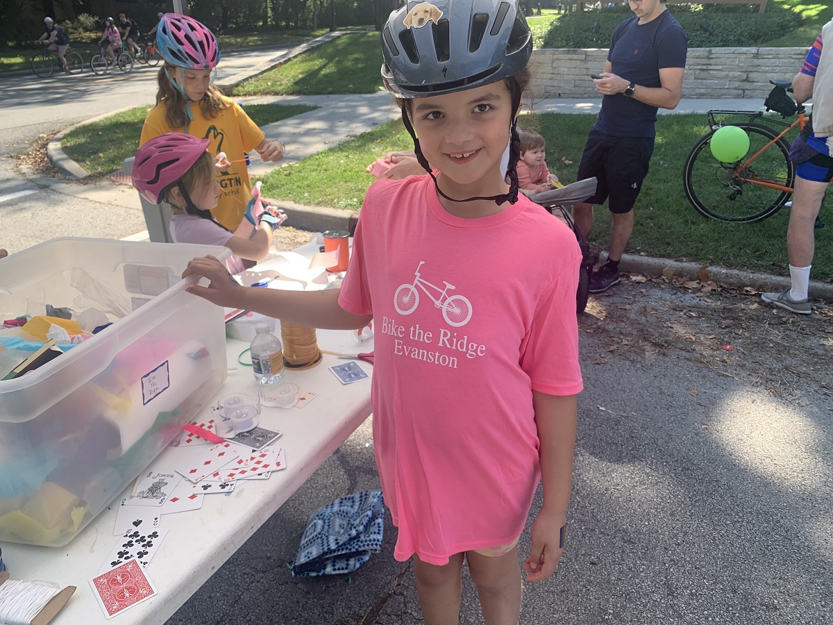 Young girl with "Bike the Ridge Evanston" T shirt