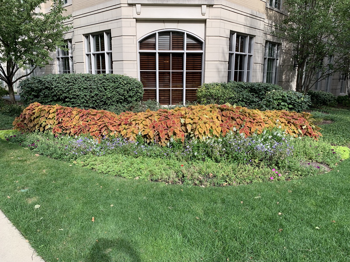 Collis and other flowers at SW corner of Mather