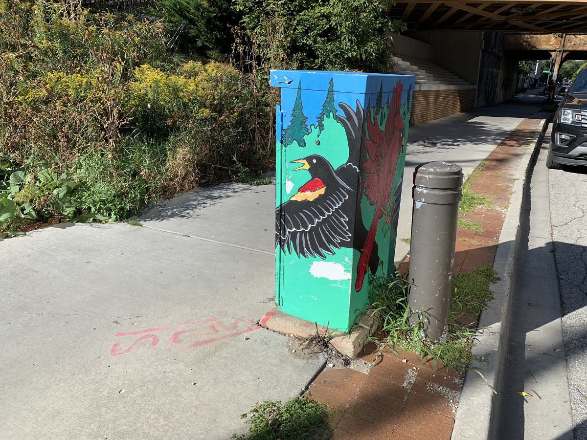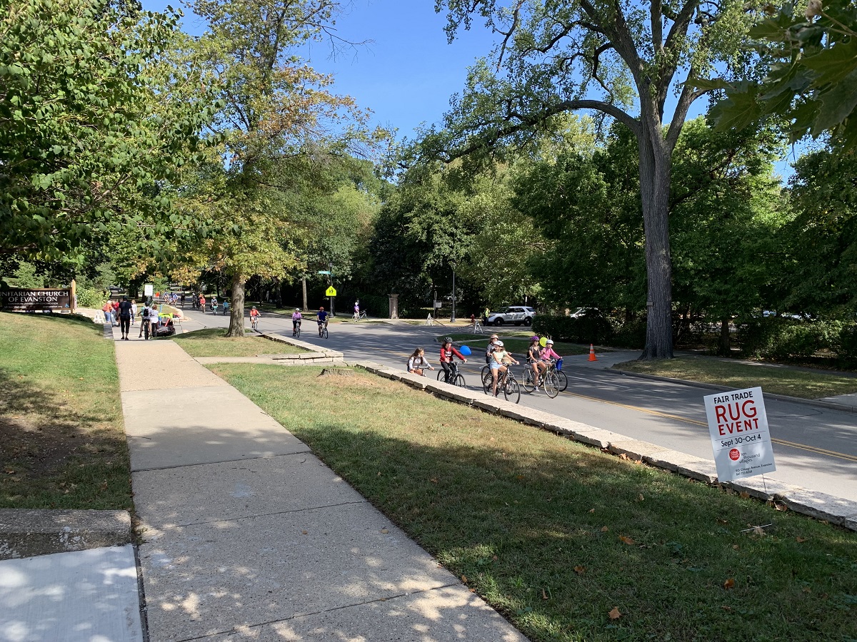 Robb Geiger (in red) with many cyclists at Ridge and Greenwood