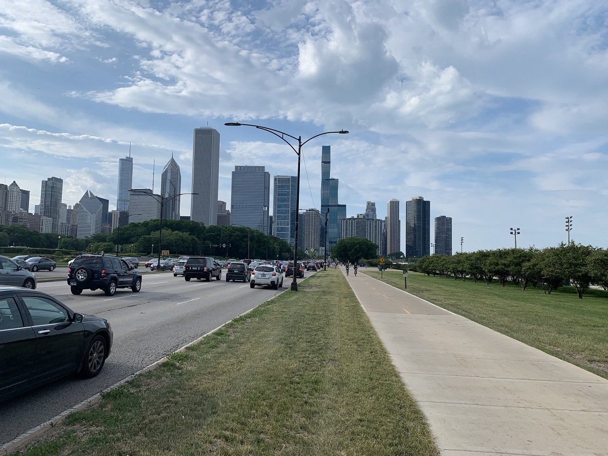 Looking south along Lake Shore Drive at Field Museum