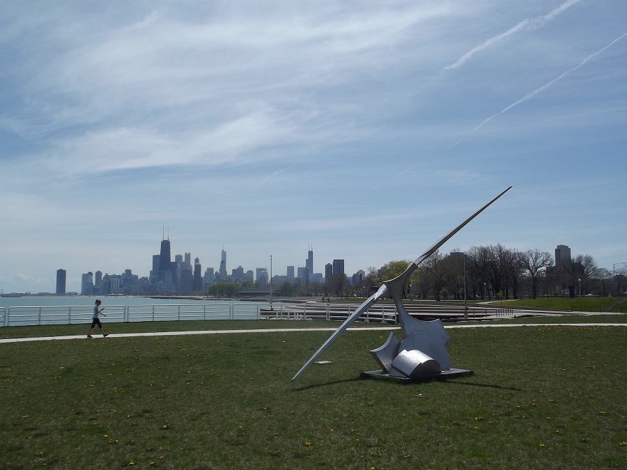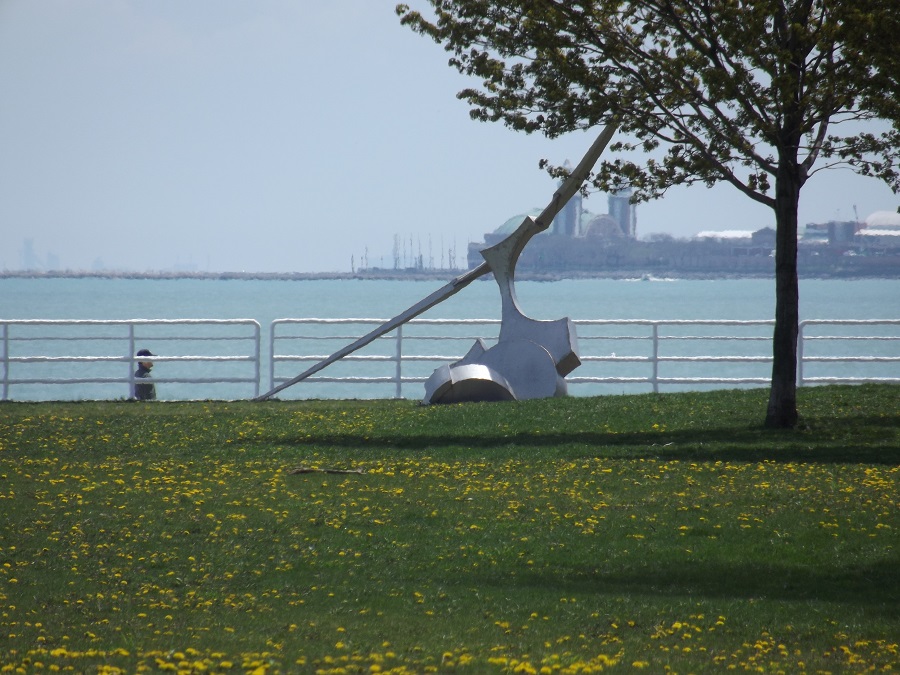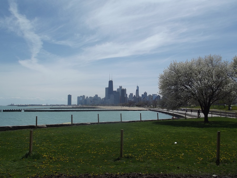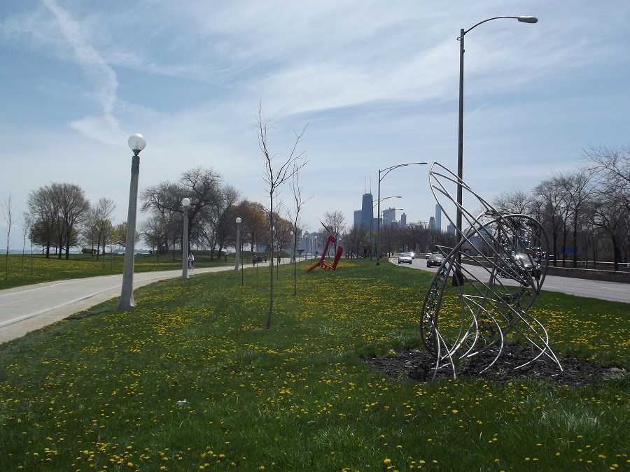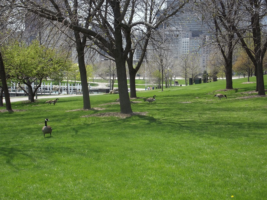 Many Canada geese hoping to be fed along Chicago lakeshore bike path