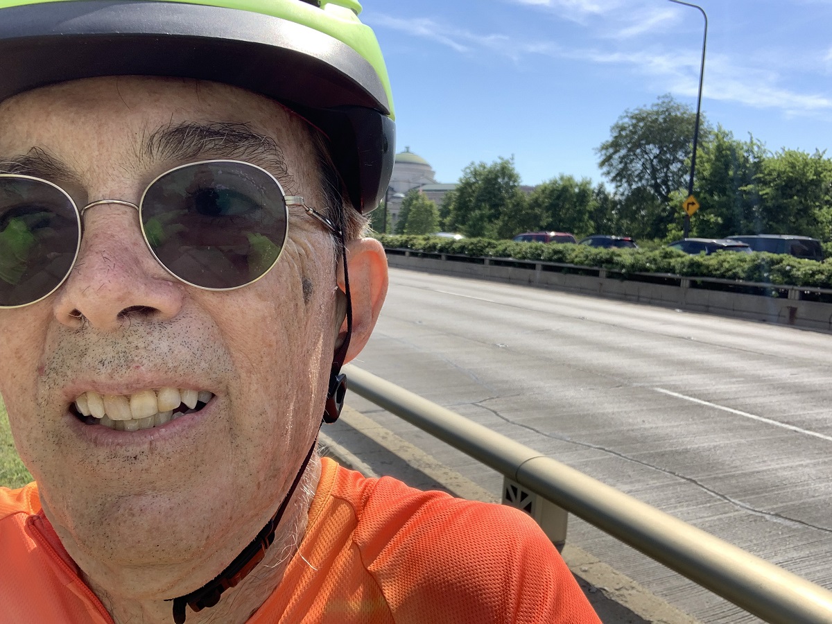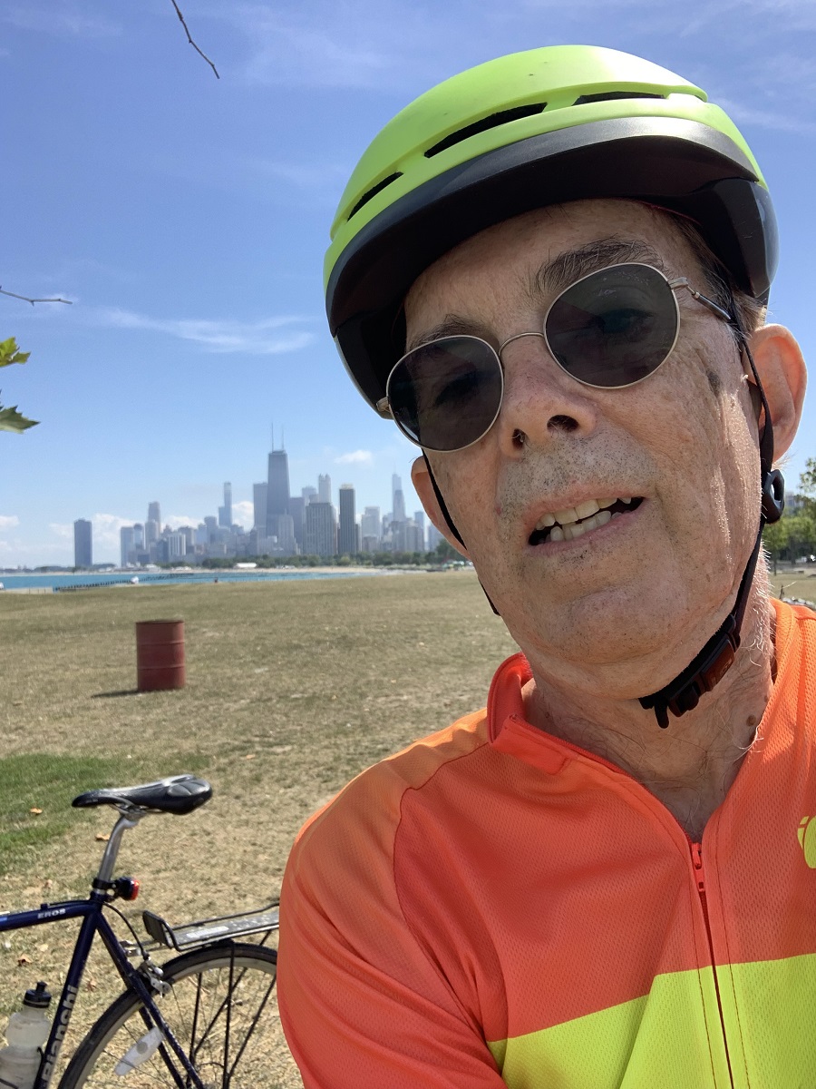 Andy with Chicago skyline from Fullerton