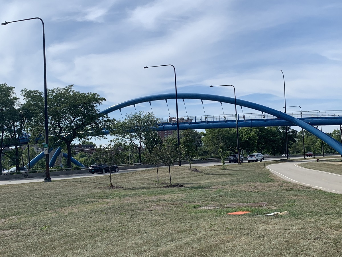 New arched suspension pedestrian bridge over Lake Shore Drive