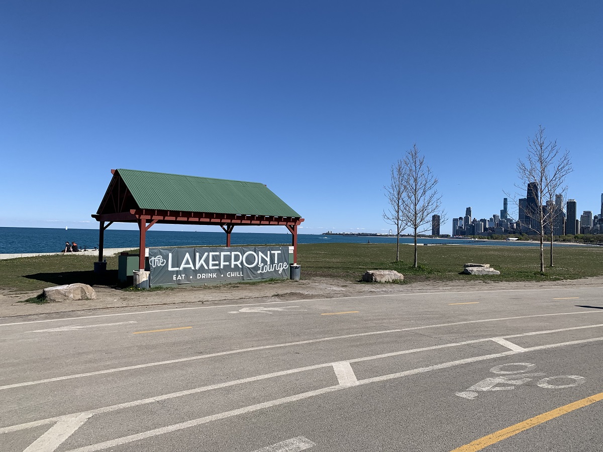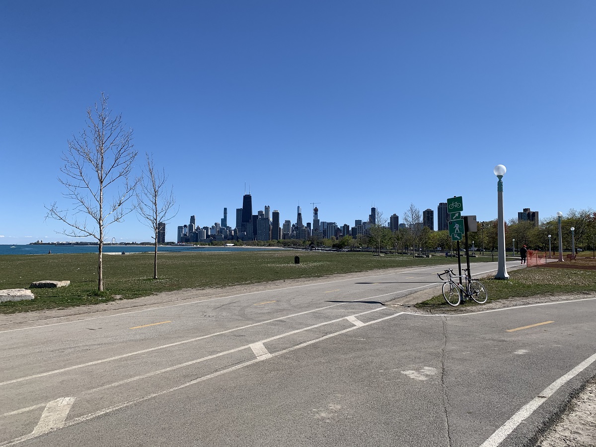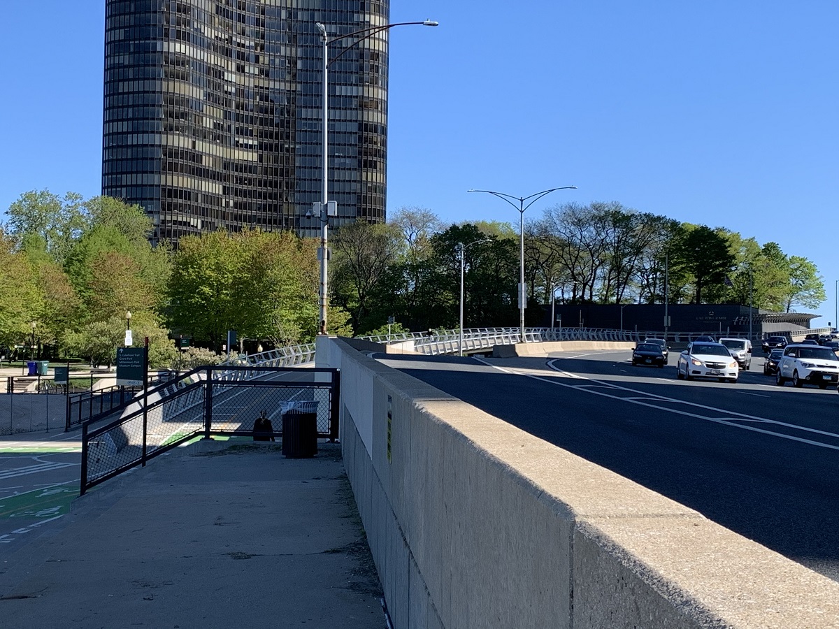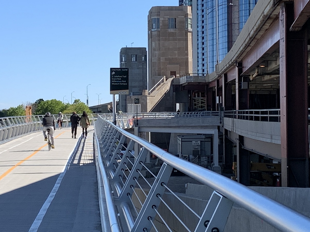 Looking back northeast with an "exit" from the flyover bridge to Navy Pier